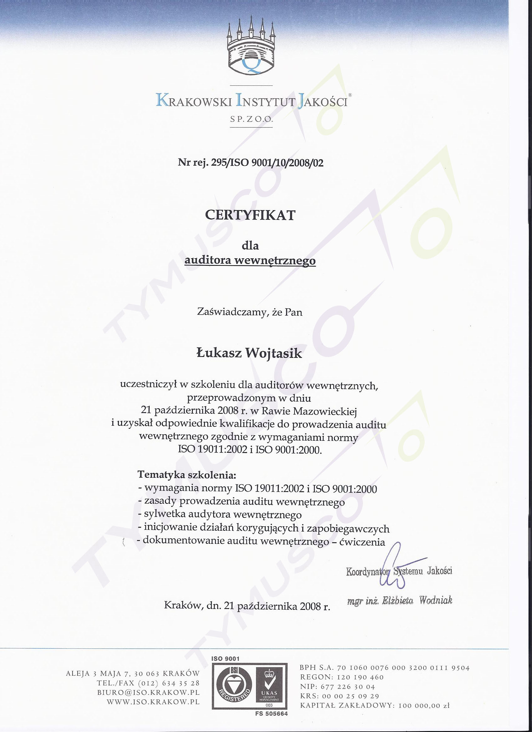 Certyfikat auditor wewnętrzny