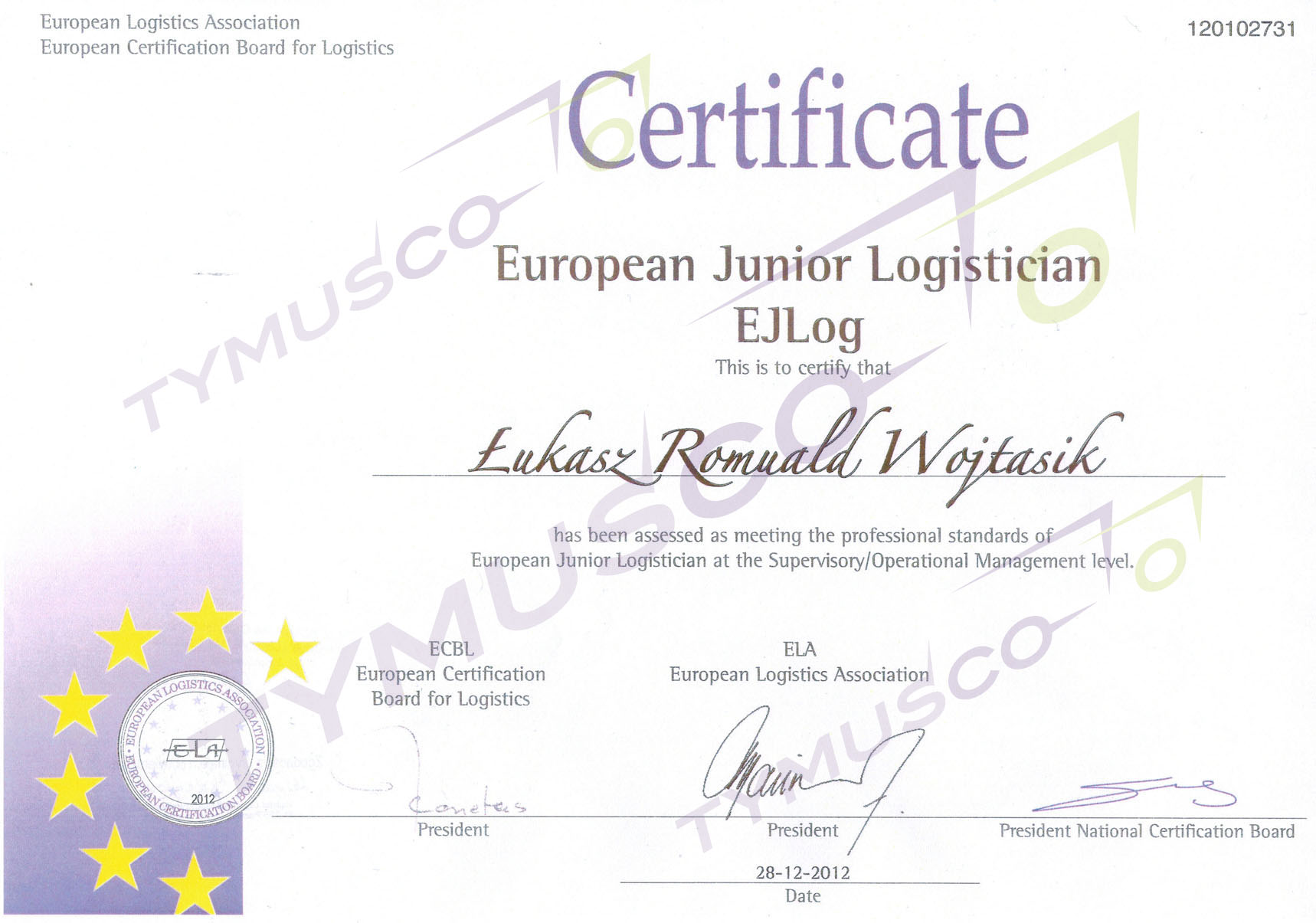 Certyfikat ELA (European Junior Logistician)